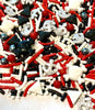Ingredients: Sugar, Dextrose, Corn Starch, Hydroxypropl Distarch Phoshate, Hydrogenated Palm Oil,Dextrin, Shellac, Tapioca Starch, Glucose, Palm Oil, Cocoa, Glycerin, Soy Lecithin, Gum Arabic, Artificial Flavor, Carnauba Wax, Confectioners Glaze, Mica Based Pearlescent Pigments, Xanthan Gum, Artificial Colors (FD&C Red 3, Yellow 5, Blue 1, Blue 2, Red 40, Titanium Dioxide)