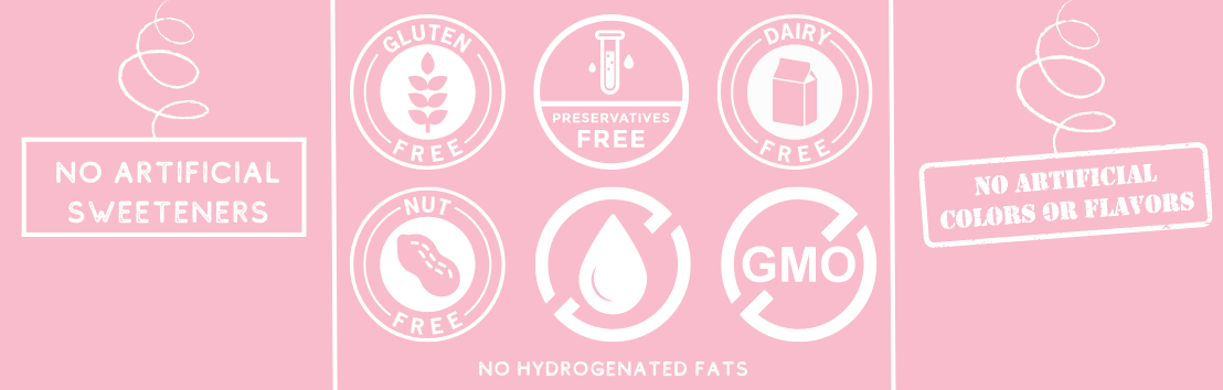 This product contains:* No Gluten* No GMO* No Nuts* No Dairy Products* No Hydrogenated Fat* No Preservatives* No Artificial Flavors* No Artificial Colors* No Artificial Sweeteners
